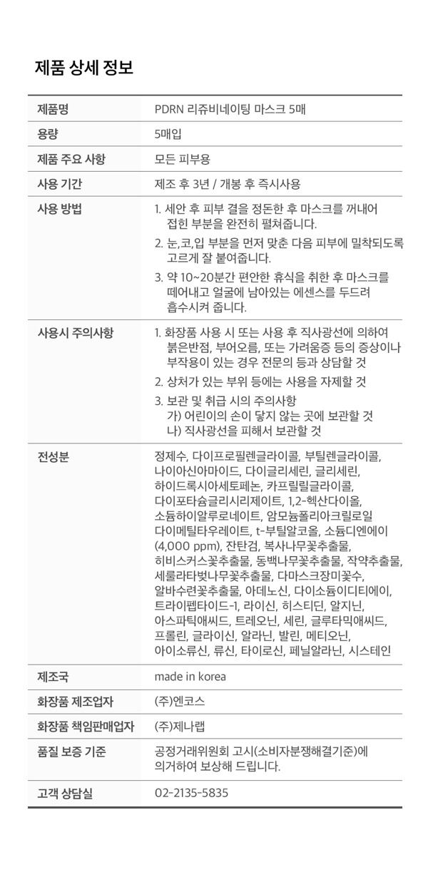 Genabelle PDRN Rejuvenating Mask 5pcs 제나벨 PDRN 리쥬비네어팅 마스크 5매