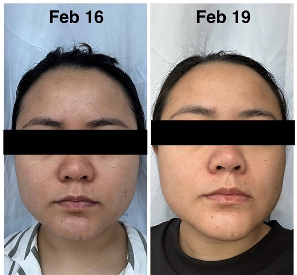 I'm still using the product, and here are my photos after using it six times. It has really helped with the redness on my face and my dark spots. I noticed visible changes after just three days! Thank you very much for helping me with my skin concerns.