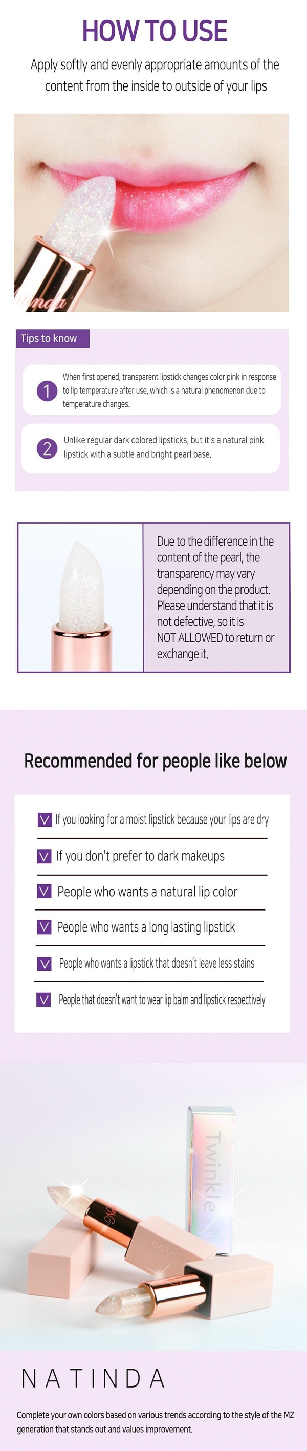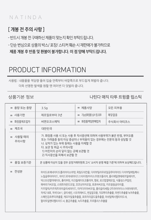 Natinda Magic TattooTwinkle Lipstick 3.5g 나틴다 매직 타투 트윙클 립스틱 3.5g