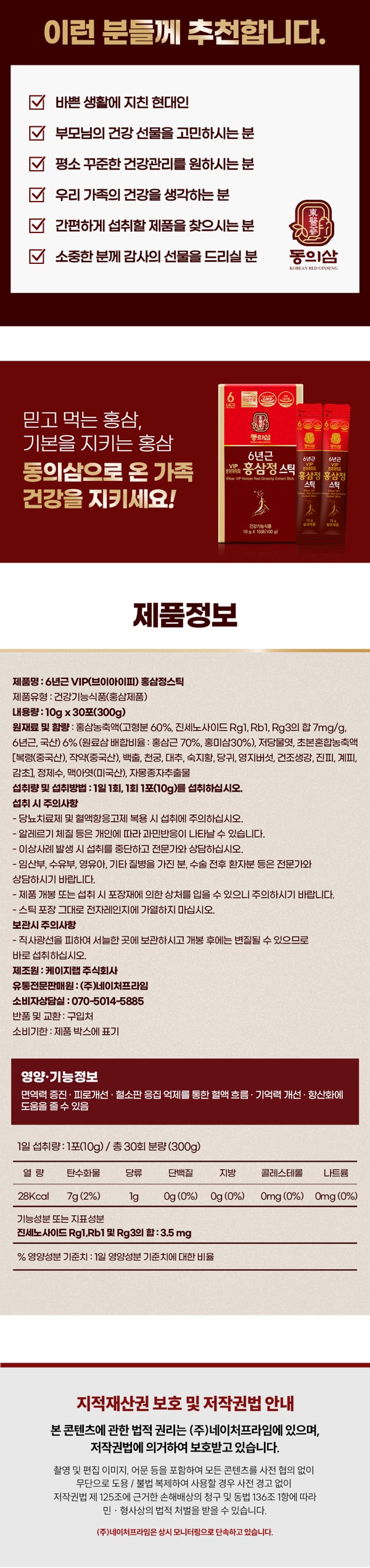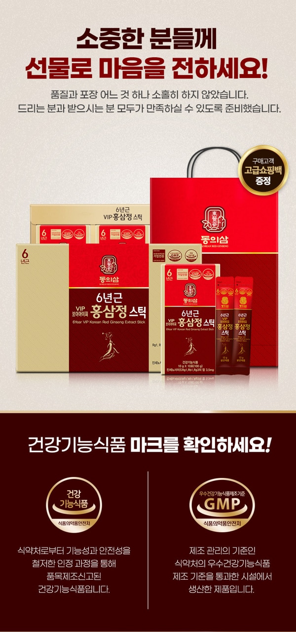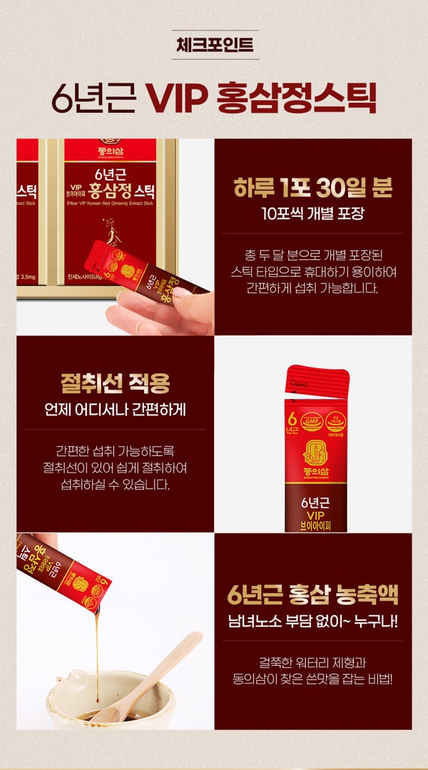 Donguisam 6-year-old VIP red ginseng extract stick 10g x 30pcs 동의삼 6년근 VIP 홍삼정스틱 10g x 30포 [G0008]